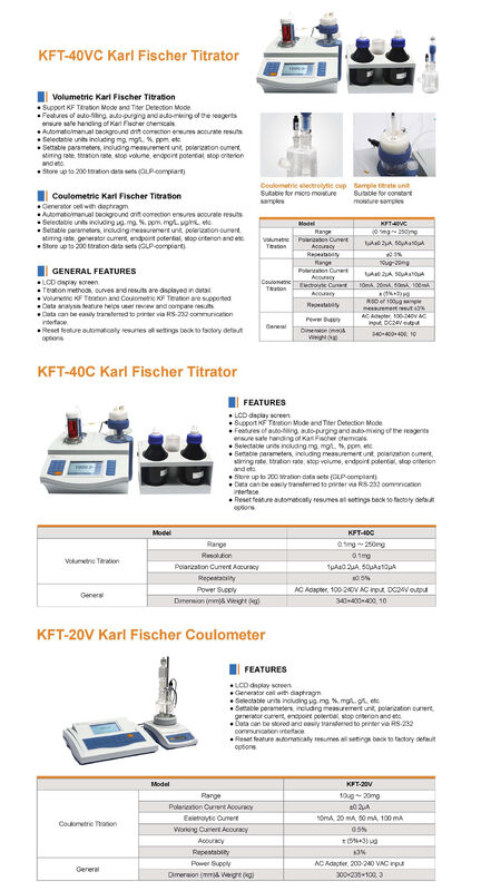 | 수분 범위: | 0.1~250.0mg | 표시하다: | 영어 터치 스크린 |